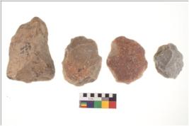 | Description / विवरण | Specimen of a Irregular flaked pebble with projected pointed top and flat bottom. |