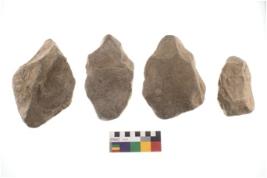 | Description / विवरण | There are n 4 of utilized worked cores and show irregular dominant scar pattern. Three are tapering at one end. |