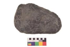 | Description / विवरण | Specimen of an handaxe with one elonagted side for holding purpose. . It is blackish in colour and smooth in texture. |