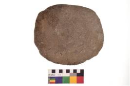 | Description / विवरण | Specimen of an uneven shaped grinding stone. It is brownish in colour and smooth in texture. It has flat base. |