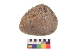 | Description / विवरण | Specimen of an uneven shaped grinding stone. It is brownish in colour and smooth in texture. It has flat base. |