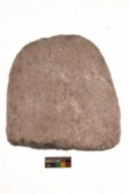 | Description / विवरण | Specimen of a roughly rectangular shaped saddle quern. It is brownish in colour and coarse in texture. It has flat base. |