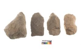 | Description / विवरण | There are n 4 of utilized worked cores and show irregular dominant scar pattern. Two have a flat base. |