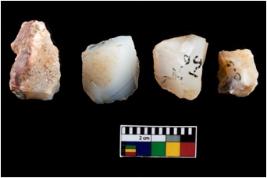 | Description / विवरण | Four utilised worked cores with sharp edges. Some of them are tapering at one end. Removal of flakes from few sides. |