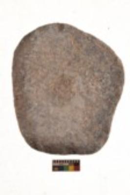 | Description / विवरण | Specimen of a roughly oval shaped smasher with coarse texture of surface. It is dark brown in colour and has flat base. |