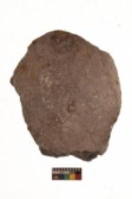 | Description / विवरण | Specimen of a roughly oval shaped smasher with coarse texture. It is dark brown in colour and has flat base. |