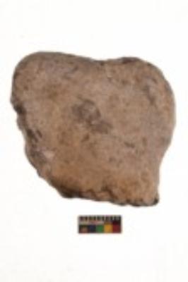 | Description / विवरण | Specimen of an uneven shaped smasher. It is light brown in colour and partially smooth surface with patina. It has flat base. |