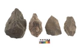 | Description / विवरण | There are n 4 of utilized worked cores and show irregular dominant scar pattern on both dorsal and ventral side. One has a broken tip. |