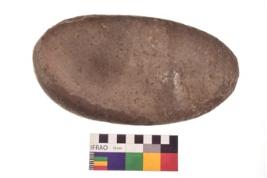 | Description / विवरण | Specimen of an uneven shaped grinding stone. It is brownish in colour and smooth in texture. It has flat base. |