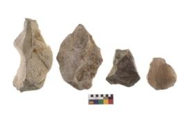 | Description / विवरण | There are n 4 of utilized worked cores and show irregular dominant scar pattern on both dorsal and ventral side. Two have a broken tip. |