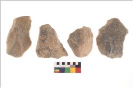 | Description / विवरण | There are n 4 flakes tool; there are multidirectional irregular scar pattern on them; made of short flakes and all four have tapering edges. |