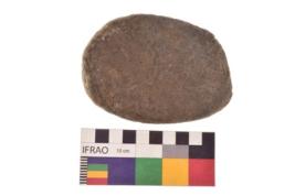 | Description / विवरण | Specimen of an uneven shaped grinding stone. It is brownish in colour and smooth in texture. It has flat base. |