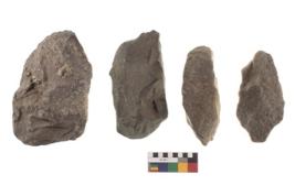 | Description / विवरण | There are n 4 of utilized worked cores and show irregular dominant scar pattern. They are tapering at one end. |