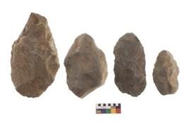 | Description / विवरण | There are n 4 of utilized worked cores and show irregular dominant scar pattern. They are tapering at one end. |