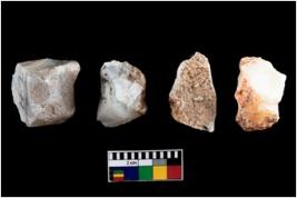 | Description / विवरण | Four utilised worked cores with sharp edges. Some of them are tapering at one end. Removal of flakes from few sides. |