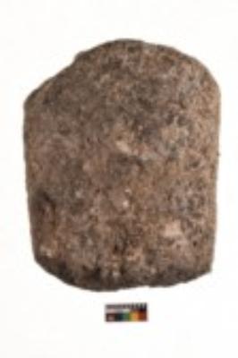 | Description / विवरण | Specimen of a roughly rectangular shaped saddle quern. It is dark brown in colour and coarse texture of surface. It has flat base. |