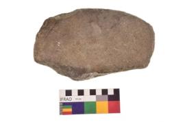 | Description / विवरण | Specimen of an uneven shaped grinding stone. It is brownish in colour and smooth in texture. It has flat base. |