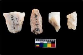 | Description / विवरण | Four utilised worked cores with sharp edges. Some of them are tapering at one end. Removal of flakes from few sides. |