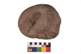 | Description / विवरण | Specimen of a roughly round shaped hammerstone with smooth texture. It is brownish in colour and round in cross section. |