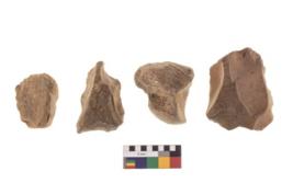 | Description / विवरण | There are n 4 of utilized worked cores and show irregular scar pattern on both dorsal and ventral side. Two have a broken tip. |