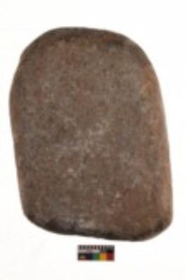 | Description / विवरण | Specimen of a roughly rectangular shaped saddle quern. It is dark brown in colour and partially smooth uneven surface. |