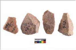 | Description / विवरण | There are n-4 of utilized flake cores. There are multidirectional irregular dominant scar pattern on both dorsal and ventral face of the cores. |