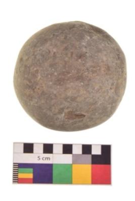 | Description / विवरण | Specimen of a roughly round shaped hammerstone with smooth texture. It is brownish in colour and round in cross section. |