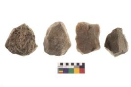 | Description / विवरण | There are n 4 of utilized worked cores and show irregular dominant scar pattern. One has a broken tip. |
