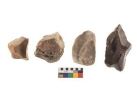 | Description / विवरण | There are n 4 of utilized worked cores and show irregular scar pattern on both dorsal and ventral side. Two have a broken tip. |