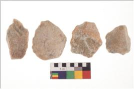 | Description / विवरण | Specimen of a Irregular flaked pebble with projected pointed top and flat bottom. |