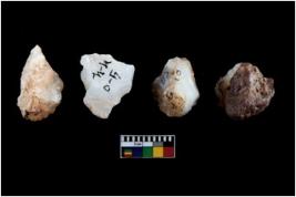 | Description / विवरण | Four utilised worked cores with sharp edges. Some of them are tapering at one end. Removal of flakes from few sides. |