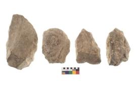 | Description / विवरण | There are n 4 of utilized worked cores and show irregular dominant scar pattern on both dorsal and ventral side. They have sharp edges. |