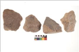 | Description / विवरण | Specimen of a Irregular flaked pebble with projected pointed top and flat bottom. |