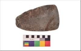 | Description / विवरण | Specimen of an handaxe with one elonagted side for holding purpose. It is dark brown in colour and smooth in texture. |