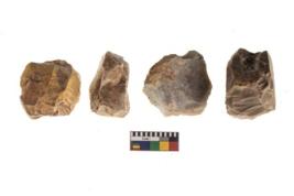 | Description / विवरण | There are n 4 of utilized worked cores and show irregular scar pattern on both dorsal and ventral side. Three have a broken tip. |