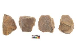 | Description / विवरण | There are n 4 of utilized worked cores and show irregular dominant scar pattern. Three have a broken trip. |