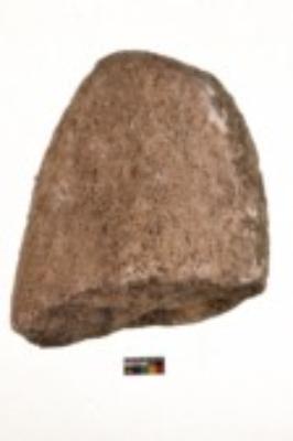 | Description / विवरण | Specimen of an half oval shaped saddle quern. It is brownish in colour and coarse texture of surface. It has flat base. |