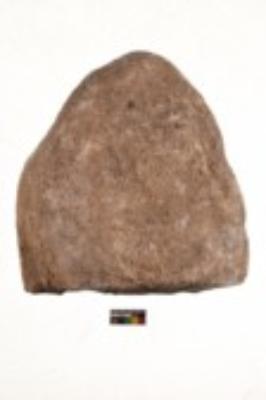 | Description / विवरण | Specimen of an half circular shaped saddle quern. It is brownish in colour and rough surface. It has flat base. |