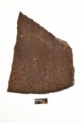 | Description / विवरण | Specimen of an uneven shaped grinding stone. It is brownish in colour and smooth in texture. It has flat base. |