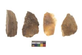 | Description / विवरण | There are n 4 of utilized worked cores and show irregular dominant scar pattern. They are tapering at one end. |