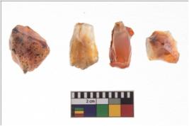 | Description / विवरण | Specimen of flake tools with prominent flaking marks. They are made up of a short flakes with sides trimmed. |