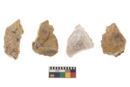 | Description / विवरण | There are n 4 of utilized worked cores and show irregular dominant scar pattern. They are tapering at one end. |