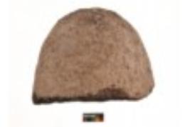 | Description / विवरण | Specimen of an half oval shaped saddle quern. It is brownish in colour and coarse texture of surface. It has flat base. |