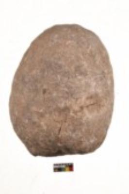 | Description / विवरण | Specimen of a roughly oval shaped smasher with coarse irregular texture. It is light brown in colour and has flat base. |