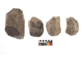 | Description / विवरण | There are n 4 of utilized worked cores and show irregular dominant scar pattern. Two have a broken tip. |