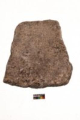 | Description / विवरण | Specimen of a roughly rectangular shaped saddle quern. It is brownish in colour and coarse texture of surface. It has flat base. |