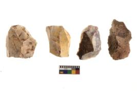 | Description / विवरण | There are n 4 of utilized worked cores and show irregular scar pattern on both dorsal and ventral side. One has a flat base. |