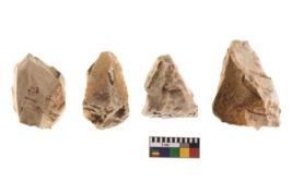 | Description / विवरण | There are n 4 of utilized worked cores and show irregular scar pattern on both dorsal and ventral side. Three are tapering at one end. |