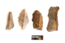 | Description / विवरण | There are n 4 of utilized worked cores and show irregular scar pattern on both dorsal and ventral side. Two have broken tip. |