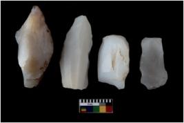 | Description / विवरण | There are n 4 cores; There are multidirectional irregular scar pattern on them with several broad fluted marks.The flake scars are seen on all sides |